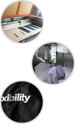 根据面料特性,仔细选择对应的胶条,再由经验丰富的过胶师傅测试面布与胶条的吻合温度,杜绝水洗脱胶,起泡等问题。